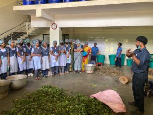 We are gaining popularity as a destination for learning. A group of 56 students and 6 teachers from Chinmaya Vidyalaya, Pallavur visited Ahalia campus as part of their subject enrichment program. Green Ahalia team received them and conducted the biodiversity education tour. They were introduced to the technology demonstration of Sandal based agroforestry. AMMU team provided an exposure to the Ahalia Medicine Manufacturing Unit and its process. Further, in the garden, the visitors had a first-hand experience of Mist chamber propagation, the diverse scope of medicinal plants through thematic gardens – Ottyan garden, Nutrition garden, Azadi ka Amruth Mahotsav Oushadhi garden, etc. The other attractions to students were special and focussed themes like butterfly garden, Fern house, Orchid house, Cactus house and other adjoining gardens highlighting medicinal formulations, aquatic collections and gymnosperms in star forest. The team was further taken to the unique dye yielding plants and bambusetum. The visitors also had and exposure to alternate energy and water conservation. Finally they had a peep into the Heritage village and Sculpture park. The students and teachers were highly impressed by the activities and had a great learning experience.