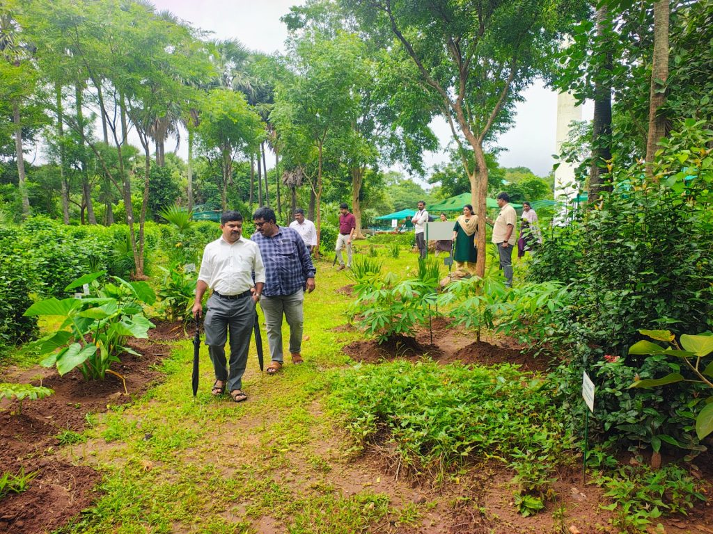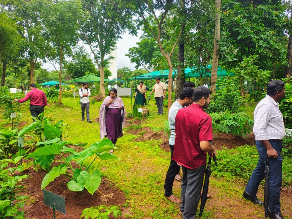 12 officers from tourism and forest department, Govt of Kerala visited Ahalia campus in connection with Three-day Compulsory Training Program for Group A / Class 1 Officers on 16th July 2025. This event was organized by Kerala Forest Research Institute. This included indoor lectures and field visits. Dr. K Haridasan gave a presentation about Ahalia campus and its green initiatives. Later Dr. RVK Varma explained about Ahalia Heritage Village and Sculpture Park. After the lecture session the team visited the campus, Green Ahalia cultivation models, thematic garden, Heritage village and Sculpture Park. The visitors left the campus, apparently satisfied. Their visit is expected to trigger tourism activities connected to Ahalia.