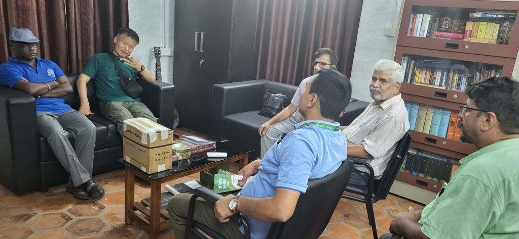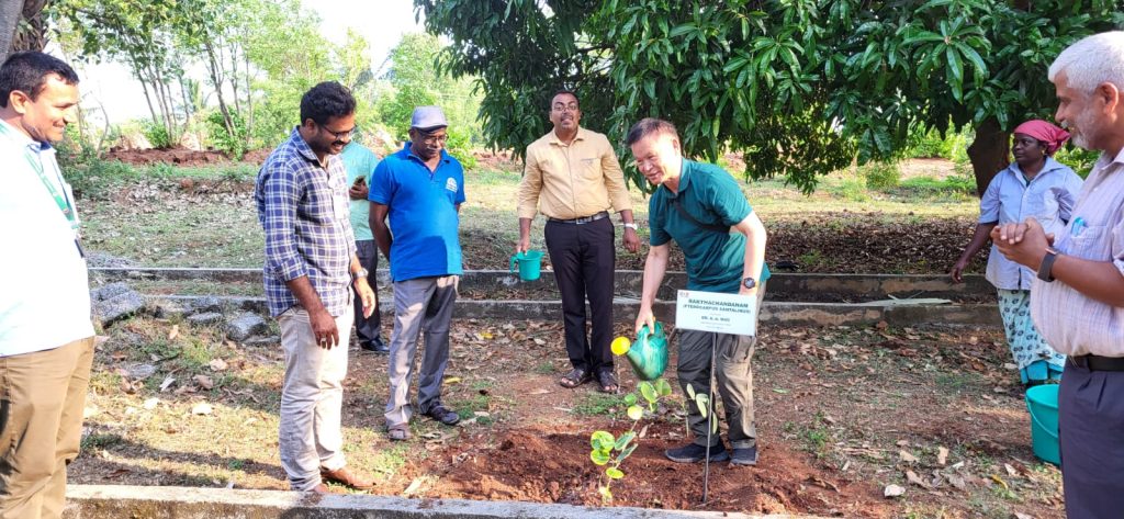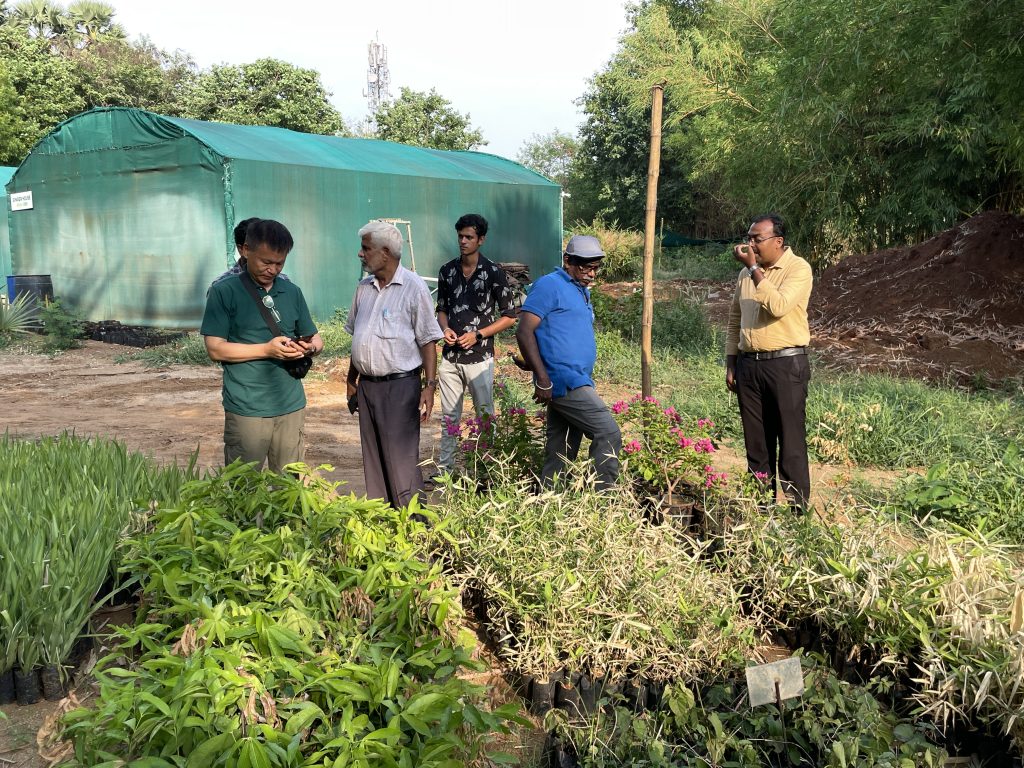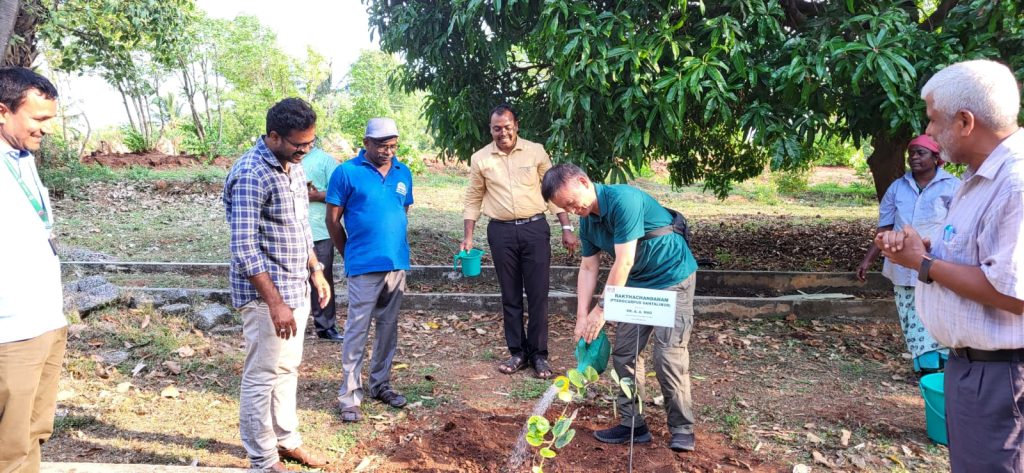 It is with Great excitement and happiness, we share the visit of Dr. A. A. Mao, Director, Botanical Survey of India on 23rd April 2025. In this visit, he was accompanied by Dr. C. Murugan, HOO, BSI, Kolkata. They were taken all around the theme gardens and conservatory plots at Chaaythara. We also got a chance to get a threatened plant (Pterocarpus santalinus L.f.) planted in Smrithivaatika. He expressed his nice words and appreciated our efforts in theme garden establishment. In addition, Dr. A. A. Mao and his team had a brief meeting with Sri. Sarath O. M along with Green Ahalia team. Finally, we also took the BSI team to Ahalia Heritage Village (Heritage Museum) and Sculpture Park with professional explanations by Dr. Varma. Dr. Mao was apparently happy and impressed with the activities under taken by Ahalia International Foundation and the green vision of the Chairman Dr. V. S. Gopal. He expressed his good wishes to Ahalia group and promised their full support and guidance in our future endeavours.