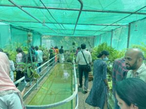 As part of celebrating the association day, on 23-02-2023 Principal Prof. Maya C. Nair, who is also one of our Advisory board member, Faculties, Students and research scholars from Department of Botany, Govt. Victoria College, Palakkad visited Ahalia campus. They have been taken round Sandal based agroforestry model, Ahalia Medicine Manufacturing Unit, Star forest and other theme gardens, Fern and foliage house, Cacti and Succulent house, Orchid house, Bambusetum, Heritage Village, etc. They had brought cuttings of Tamarix to be propagated in our Mist Chamber and cuttings were made out of these. After lunch they held diverse cultural programs in Koothambalam. They greatly appreciated Green Ahalia works in different aspects of biodiversity conservation and sustainable use and expressed their satisfaction with the field trip and coordination by Green Ahalia. They also officially handed over the first set of QR codes signage for 100 species in our garden as part of our MoU with them for technological support.