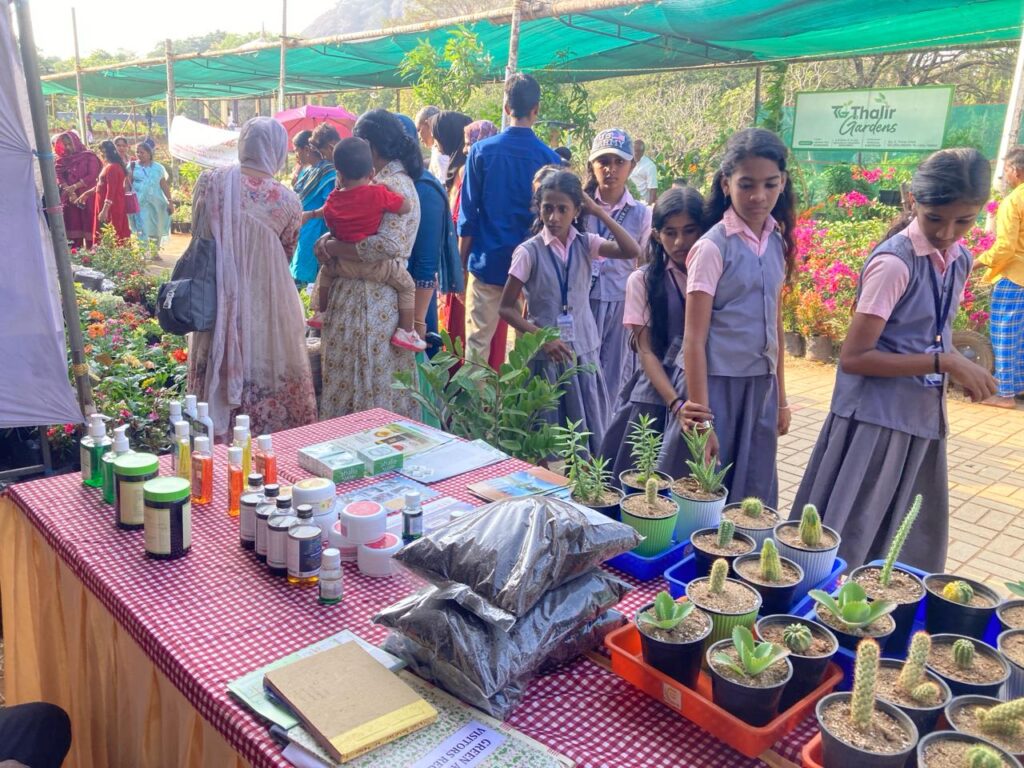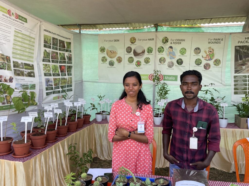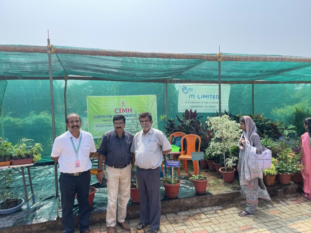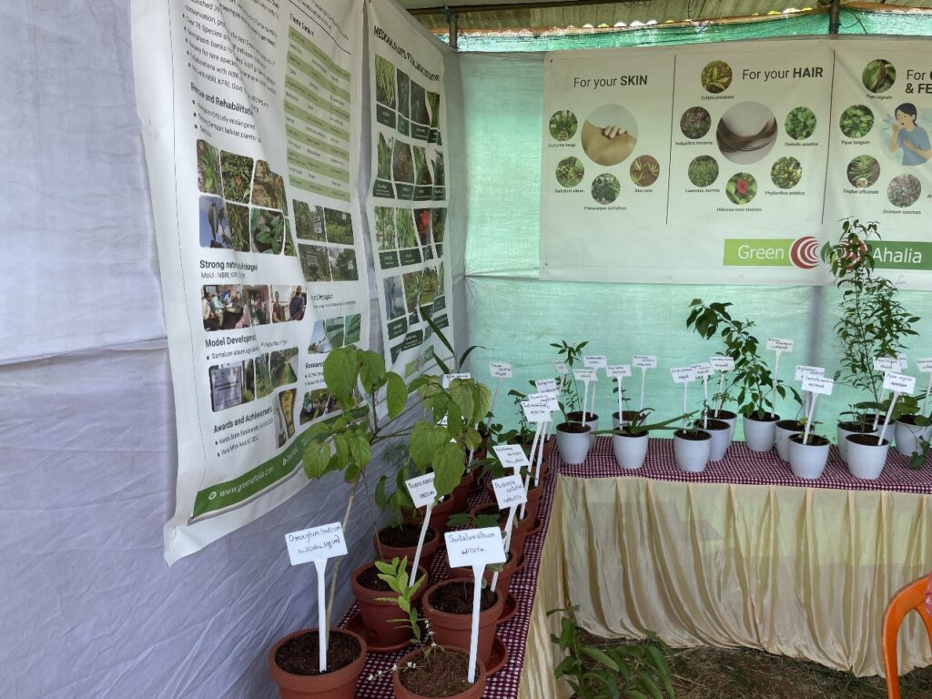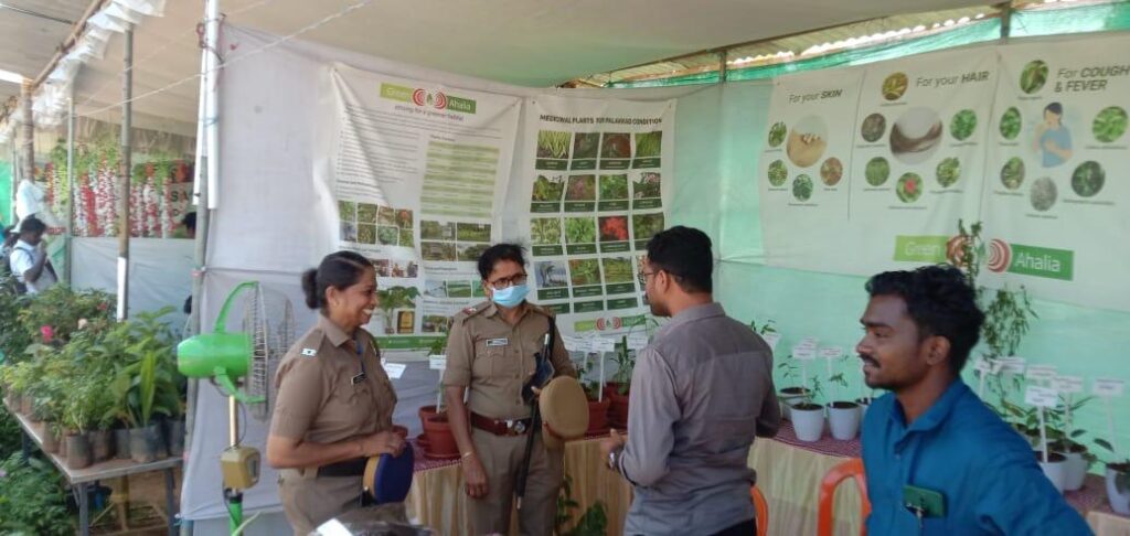 As part of our outreach efforts and as requested by the District Tourism Promotion Council Green Ahalia put up an exhibition stall at the flower show venue (during 23 to 28th January 2024) at Malampuzha which is a famous tourist destination in the district. The stall depicted medicinal plants for herbal health care and cosmeceutical sector. It attracted a large number of visitors and provided a forum for interaction with interested stake holders. At the venue the school herbal garden package promoted by Green Ahalia was also showcased along with potential farming species for the district.