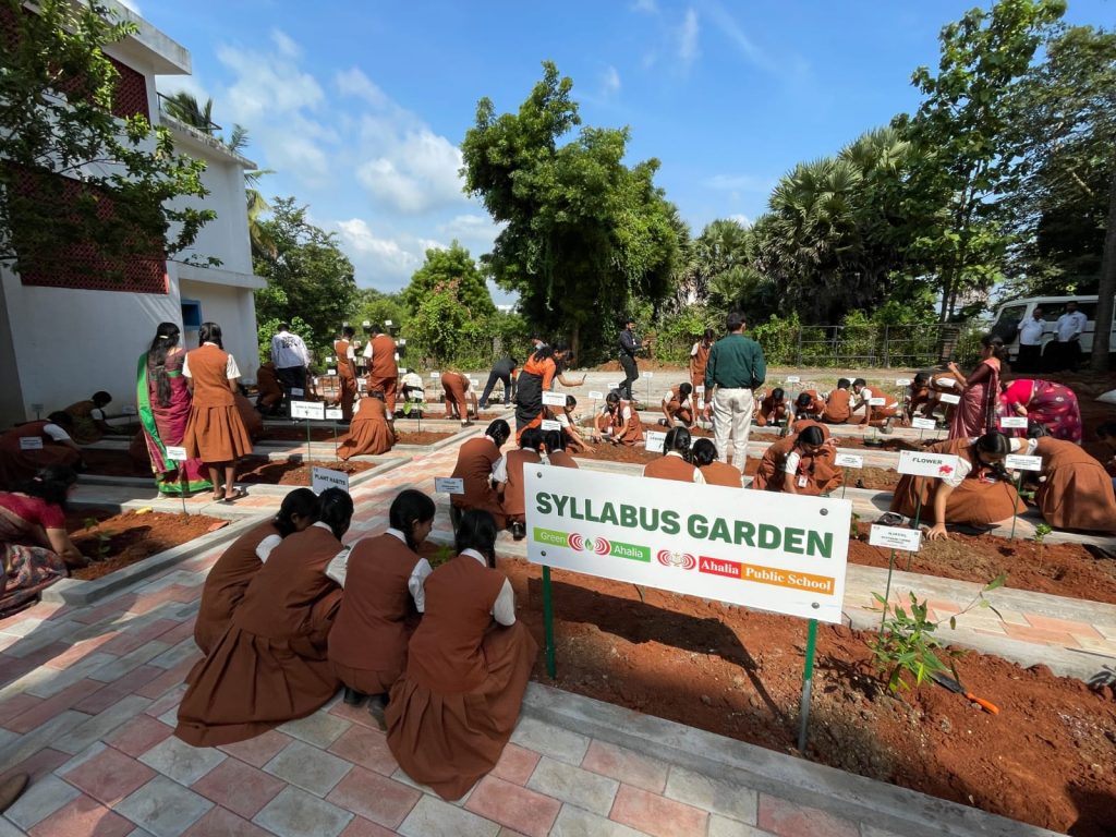 Green Ahalia celebrated Haritholsavam – 2025 on 10th June 2025 with a meticulously planned programme. The function began with the inauguration of the ‘Syllabus garden’ at Ahalia Public School (APS) that was designed and established Jointly by Green Ahalia and APS. Prof. (Dr.) Santhosh Nampi, Senior Professor, University of Calicut inaugurated the garden with participation from Green Ahalia team, Principal, Academic Director, staff and students of APS.