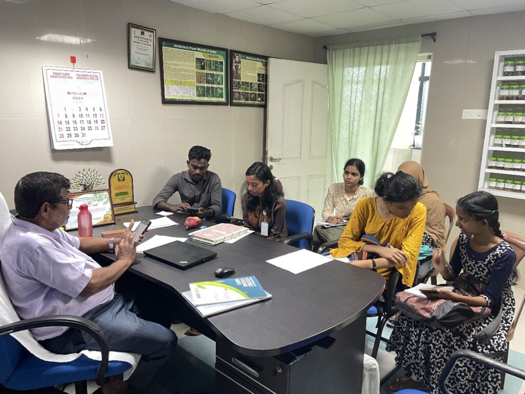 On 16th January 2024, three of the M.Sc Botany students from Mercy College, Palakkad Ms. Navami, Ms. Shahma and Ms. Thara doing their PG Internship at Green Ahalia on topics Invasive species, wild ornamentals and spiritually significant plants etc participated in the mid term progress review meeting at Ahalia. Each of them made their presentations on their work and progress achieved so far. Each of their progress were found to be satisfactory. Further course of action was suggested by the review committee.