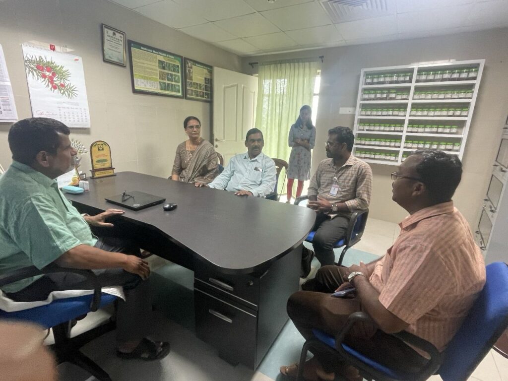 As a pleasant surprise we could get Prof Sabu, who is the authority on Ginger group of plants covering Zingiberaceae, Marantaceae, Musaceae, etc to visit our campus. A man of great repute and a famous scientist, he is also in our Advisory board. He had initially visited during 2019 at Green Ahalia when he inaugurated our Prof Sabu zingiber Garden and the current visit gave him opportunity to experience the change happened over the years in garden development. After the hurried visit to all thematic gardens he left the campus giving us valuable suggestions and sharing his appreciation for our efforts. Green Ahalia is ever grateful to him for his valuable supports and guidance.