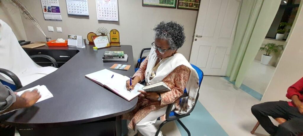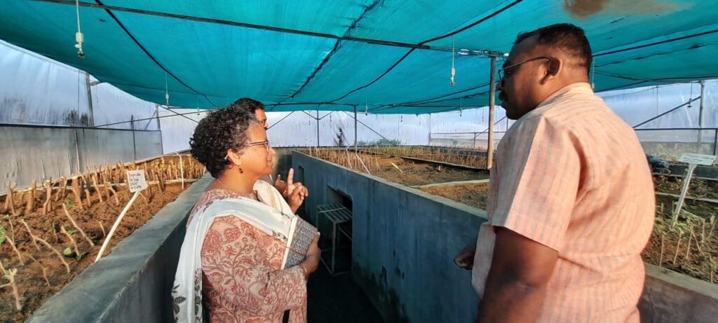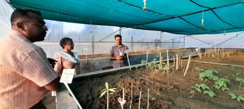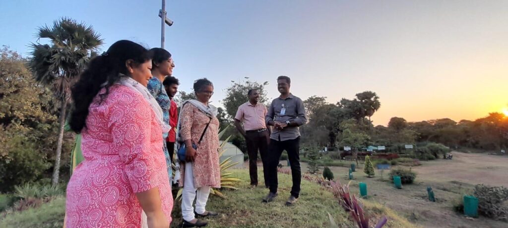 Team Key stone foundation visited Green Ahalia on 5th February 2024 . The team consists of 5 members Dr. Anita Varghese ,Dr. Shiny Rehel ,Dr. Aparna Watve ,Ms Harshavardhini and Mr. Vishnu. Their visit was primarily for familiarising with our work on biodiversity conservation. Made a brief presentation to them and took them around our thematic gardens and facilities. Our model development and germplasm works like Phytovoltaic, Sandal based agroforestry, germplam plots and propagation efforts through mist chamber and RET Garden evince keen interest in them.They appreciated our efforts on conservation and garden establishment. Before leaving the campus, they had extended invitation to green Ahalia team to visit their place for further discussion on collaboration in conservation research. Team Key stone foundation visited Green Ahalia on 5th February 2024 . The team consists of 5 members Dr. Anita Varghese ,Dr. Shiny Rehel ,Dr. Aparna Watve ,Ms Harshavardhini and Mr. Vishnu. Their visit was primarily for familiarising with our work on biodiversity conservation. Made a brief presentation to them and took them around our thematic gardens and facilities. Our model development and germplasm works like Phytovoltaic, Sandal based agroforestry, germplam plots and propagation efforts through mist chamber and RET Garden evince keen interest in them. They appreciated our efforts on conservation and garden establishment. Before leaving the campus, they had extended invitation to green Ahalia team to visit their place for further discussion on collaboration in conservation research.
