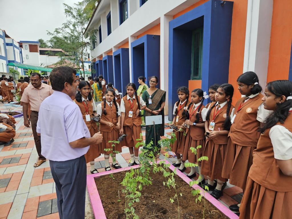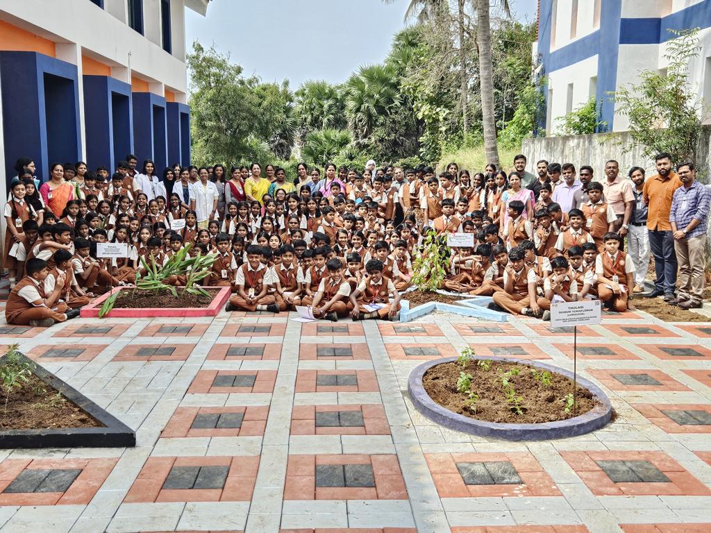 On 10th January 2024 Green Ahalia in Association with Ahalia Public School established a unique herbal garden in Ahalia Public School. There are 22 species medicinal plants most of them with multiple utilities. These are planted in specially designed beds that have outline of geometrical shapes each painted differently. Over 120 students and several teachers, Principal Ms. Latha Prakash and Academic Director Ms. Nirmala Haridasan participated from the school along with the entire team of Green Ahalia (Shaibu, Sabik, Midhun and Aiswarya). OISCA South Indian Chapter, President Dr. Parvathy Warrier was the chief guest for the function and inaugurated the Garden. Ms. Anitha, former OISCA women chapter President also graced the occasion. Dr. K Haridasan, Consultant Green Ahalia briefed about the making of this herbal garden and the effort by Green Ahalia team. Dr Sheba Sunil, Principal Ahalia Ayurveda College in her speech offered their support for the venture and congratulated the APS and GA team for the effort. Ms. Nirmala Haridasan highlighted the relevance of this garden with NEP mandate and hoped it will add to skill development under Herbal Heritage. All the students actively involved in planting each species in the garden.