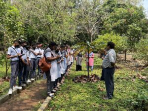 On 11th March 2023 a field orientation programme on biodiversity relating to sustainable living was conducted at Ahalia coordinated by OISCA in collaboration with Green Ahalia for high school students. Around 30 students and 6 teachers took part in the programme. Dr. Haridasan gave a brief introduction to biodiversity and green Ahalia gardens. They were shown the Sandal based agroforestry model, Ahalia medicine manufacturing unit, RET garden, Zingiber garden, Spiritual garden, Mist chamber, Ottyan garden, Nutrition garden, Azadi ka Amruth Mahotsav Oushadhi garden, Butterfly garden, Fern house, Orchid house, Cactus house and other adjoining gardens in Star forest. The team was also taken to Dye yielding plants and Bambusetum. Shaibu, Sabik and Amrutha conducted the visit. The students and teachers were highly impressed by the activities and had a great learning experience. The visitors were also taken to alternate energy activities like solar power plant, Wind mills, Water conservation lakes and the museum at heritage village.