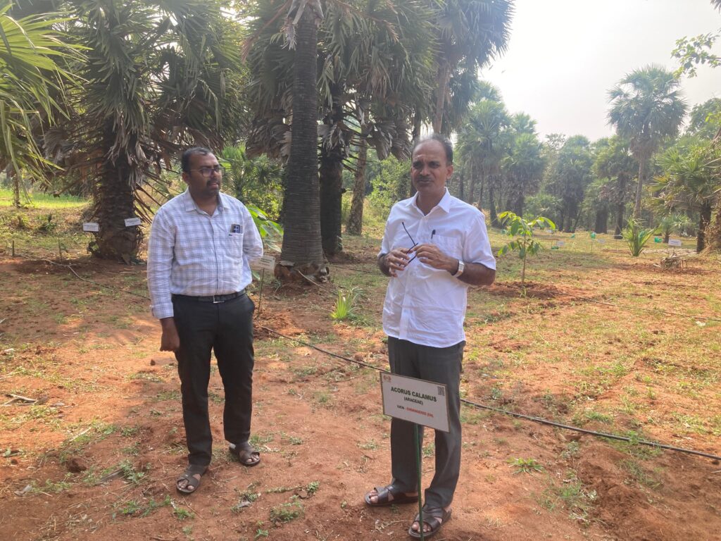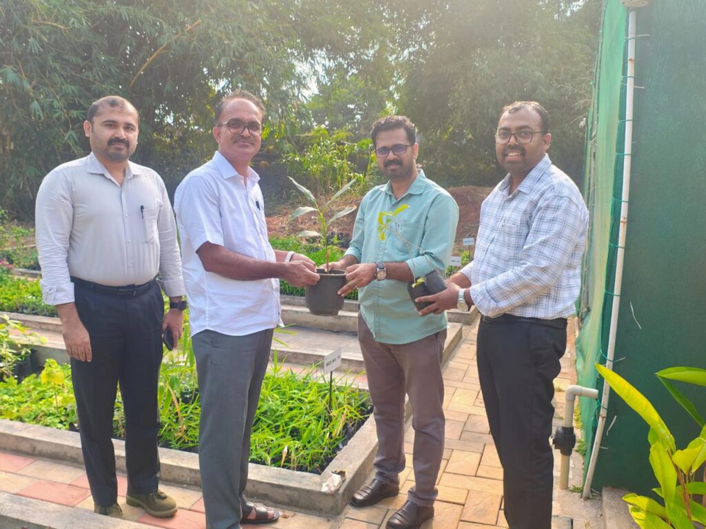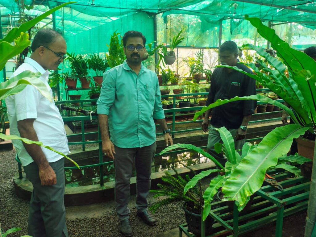 Dr. G. E. Mallikarjuna Swamy, Principal Scientist and the Scientist in charge, KFRI Sub Centre, Nilambur to our Ahalia campus on 16th January 2026. Dr. Deepu Shivadas, Junior Scientist also accompanied him. During the visit, Green Ahalia team a conducted tour of the thematic gardens was organised for them. Our propagation efforts in Mist Chamber, nurseries, and innovative cultivation models including Phytovoltaic, Sandal based agroforestry models, and themes relating to Indian system of Medicine like Gajaseva, Dasamoolam, Balaadi, Vrikshayurveda and others enthused the visitors. Dr. Mallikarjuna Swamy expressed his deep appreciation on the efforts taken by Green Ahalia and innovative approaches ensuring greener and a sustainable environment. We shared seedlings of Euryale ferox, Zingiber sabuanum, Decalepis hamiltonii, Holostem adakodien and available Palms for their gardens. It’s a way of our conservation efforts.