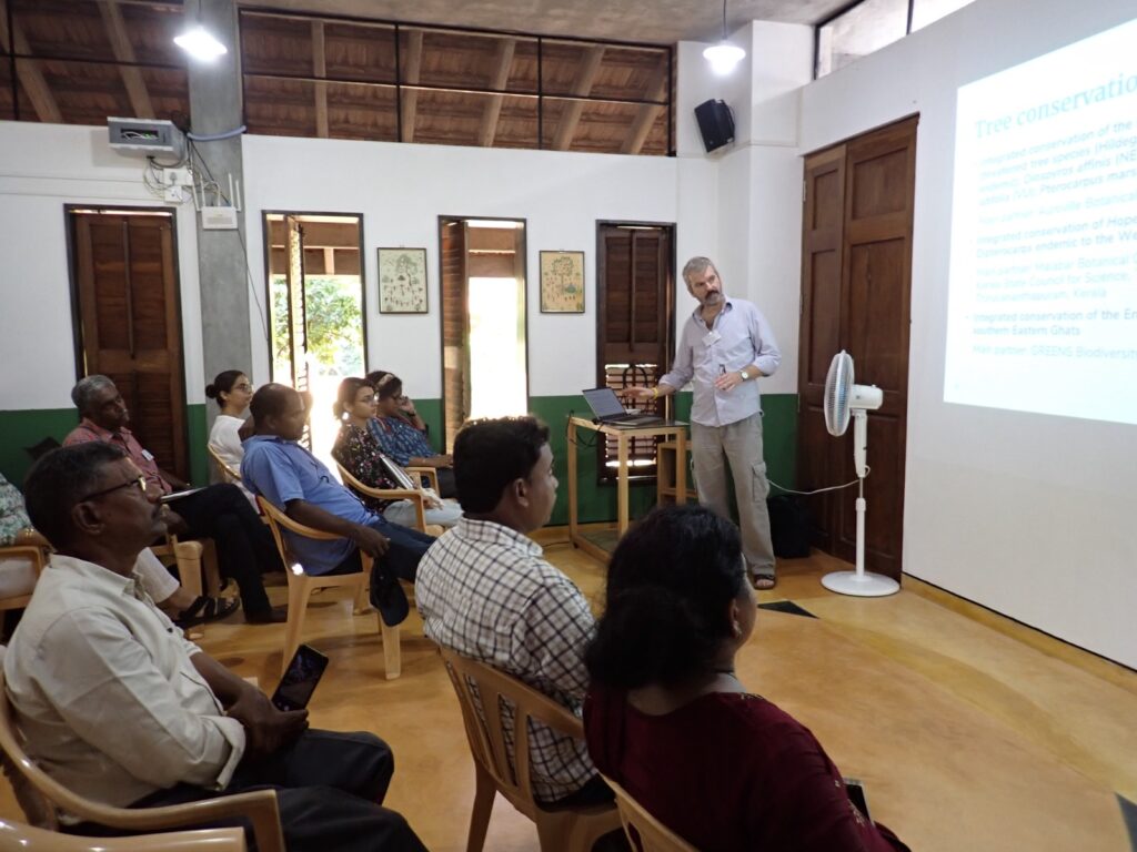 GCI (Botanic Garden congress International) organised a three day long Conference at Auroville Botanical Garden, Pondicherry for Indian Members during 10 to 12 October 2023. Mr. Shaibu and Mr. Sabik represented Green Ahalia on this event where they put up a poster on Green Ahalia story. Dr. Jayanti S Ravi IAS, Secretary, Auroville inaugurated the Conference. Paul Blanchflower, Director, Auroville Botanical Garden, Joachim Gratzfeld, Director of Regional Programmes, 35 members representing 25 institution all over India took part in the conference. The conference discussed various topics regarding Biodiversity conservation, Threatened plants, Climate change, Networking etc. The team also met Prof. Parthasarathi, Head, Ecology and ES Division, Pondicherry University and with the help of his students collected some endemic and threatened plants from Sacred grove near Pondicherry. The meeting was very fruitful and useful in networking and linkage with prominent botanic gardens in the country and offered a platform for interaction with eminent personalities.
