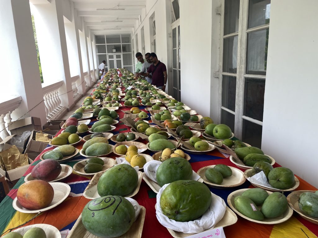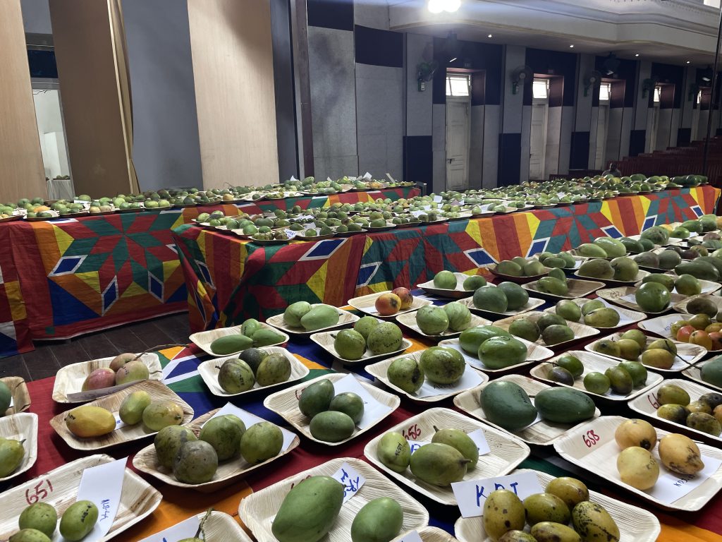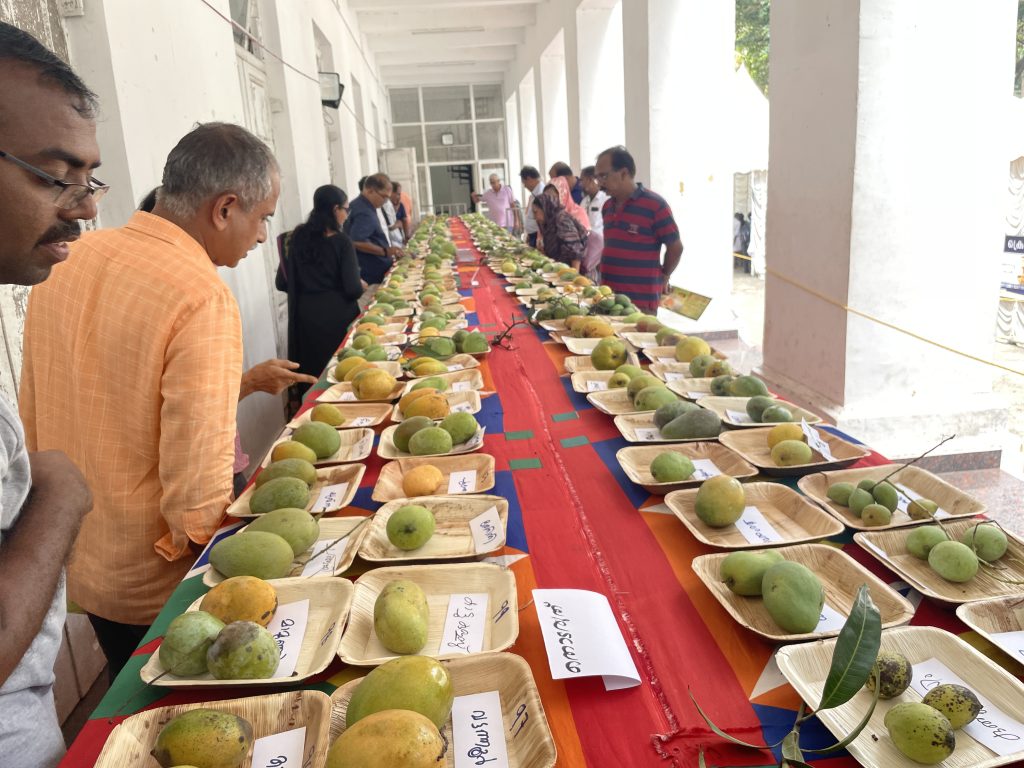 A two-day grand Mango fest was organized by Trichur Agri Horti-cultural Society, Kerala Agricultural University, District Tourism promotion council and the Indigenous Mango Tree conservation Project on 28 &29th April 2025at Thrissur town hall. Since Green Ahalia is engaged in Mango germplasm development (Manthopu) at our campus, we visited the fest on 29th April, in search of saplings of Indigenous mango trees which could be new addition to our live collection. The programme had mango display, mango products, Mango clinic and seedling sale. The mango fruit display is truly amazing with over 1600 varieties collected from Kanyakumari to Kasargod as per Sri Satheesan, one of the organisers. It’s in fact a very huge effort beyond our imagination to pool in such a large number of fruits with proper names displayed. Thankfully we got saplings of few species that are not in our collection. It was a great learning experience for us.