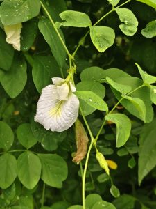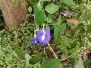 Clitoria ternatea commonly known as Shanku Pushpam in Malayalam and Butterfly pea plant in English. It is a herbaceous vine belonging to the family Fabaceae. The characteristic features of this plant are the striking deep blue solitary flowers, pinnately compound leaves obtuse leaflets and long flat pods. The useful parts are flowers, leaves and roots. This plant is mainly propagated through seeds. In Ayurveda it is known by various synonyms such as Aparajitha, Girikarnika, Vishnukrantha etc. and used in various medicinal preparations to control diabetes, treat bronchitis, asthma and ulcers. It is best used in folk tradition to improve memory, digestion, skin conditions and for blood purification. This is also cultivated as an ornamental plant due to its attractive flowers. Flowers are used to prepare herbal tea rich in antioxidants, as natural dye and food colouring. This plant initiate nitrogen fixation thereby improving soil quality. Clitoria ternatea is a versatile plant and considering its medicinal properties, ecological and ornamental value, Green Ahalia is growing this plant in our gardens.