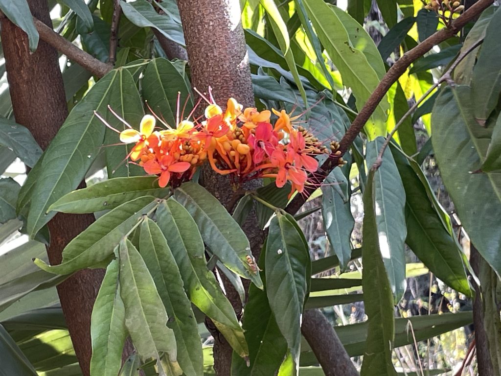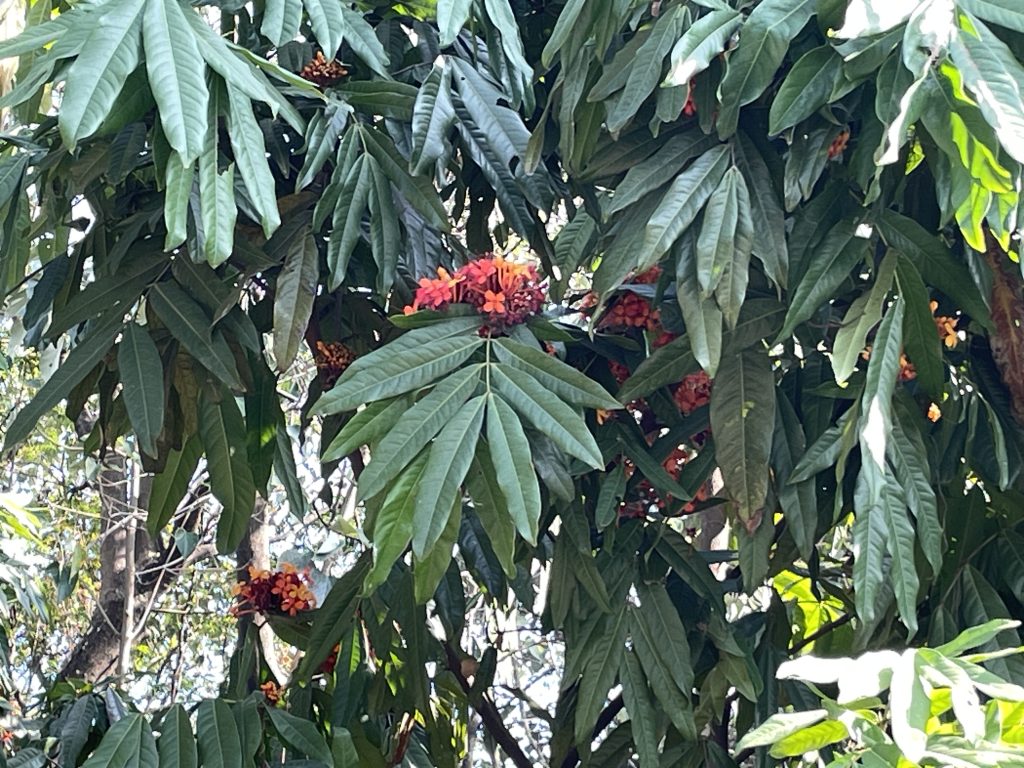Saraca asoca (Roxb.) Willd. (Ashoka tree) is a sacred, evergreen tree belonging to the family Fabaceae that is native to the Indian subcontinent and Southeast Asia. It is prized for its vibrant orange-yellow flowers in large bunches and beautiful foliage with new flush appearing reddish. The tree bears flat woody dehiscent pod. Ashoka trees are often planted in gardens and temples due to their aesthetic appeal and spiritual significance. It is also valued in Ayurveda for its medicinal properties, particularly in women health care. Due to its high demand, over exploitation takes place and pushes the tree to threatened category. As per the IUCN Redlist of threatened plants in India, the tree is enlisted as Vulnerable (VU) in Kerala. Green Ahalia is engaged in conservation of the species by planting more saplings in the campus. We have dedicated plots for Ashoka in the conservatory and also maintains a good stock of nursery seedlings.