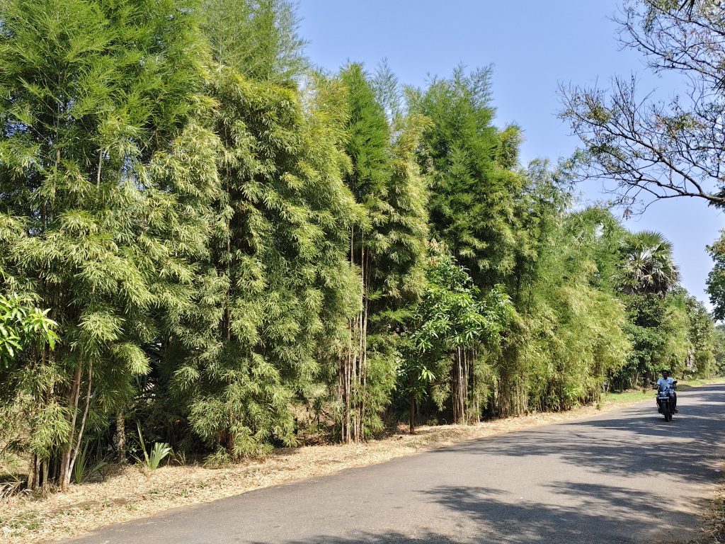 This bamboo is commonly known as Kornu locally in Palakkad and Thotti mula in Malayalam. T. oliveri is an introduced species in Kerala that forms thick compact clumps without basal branches. The culms are in young age with persistent greyish adpressed sheaths. The culms are near solid and are comparatively thin and narrowly tapering. The nodes are not pronounced. The culms grow to an average height of 15 to 25m and is hard and fetch good price in market. Commonly used in construction as reinforcement for concrete slabs, as poles, fishing rods, manufacturing of Sport goods, etc. Flowering cycle is reported to be around 48 to 50 years.
